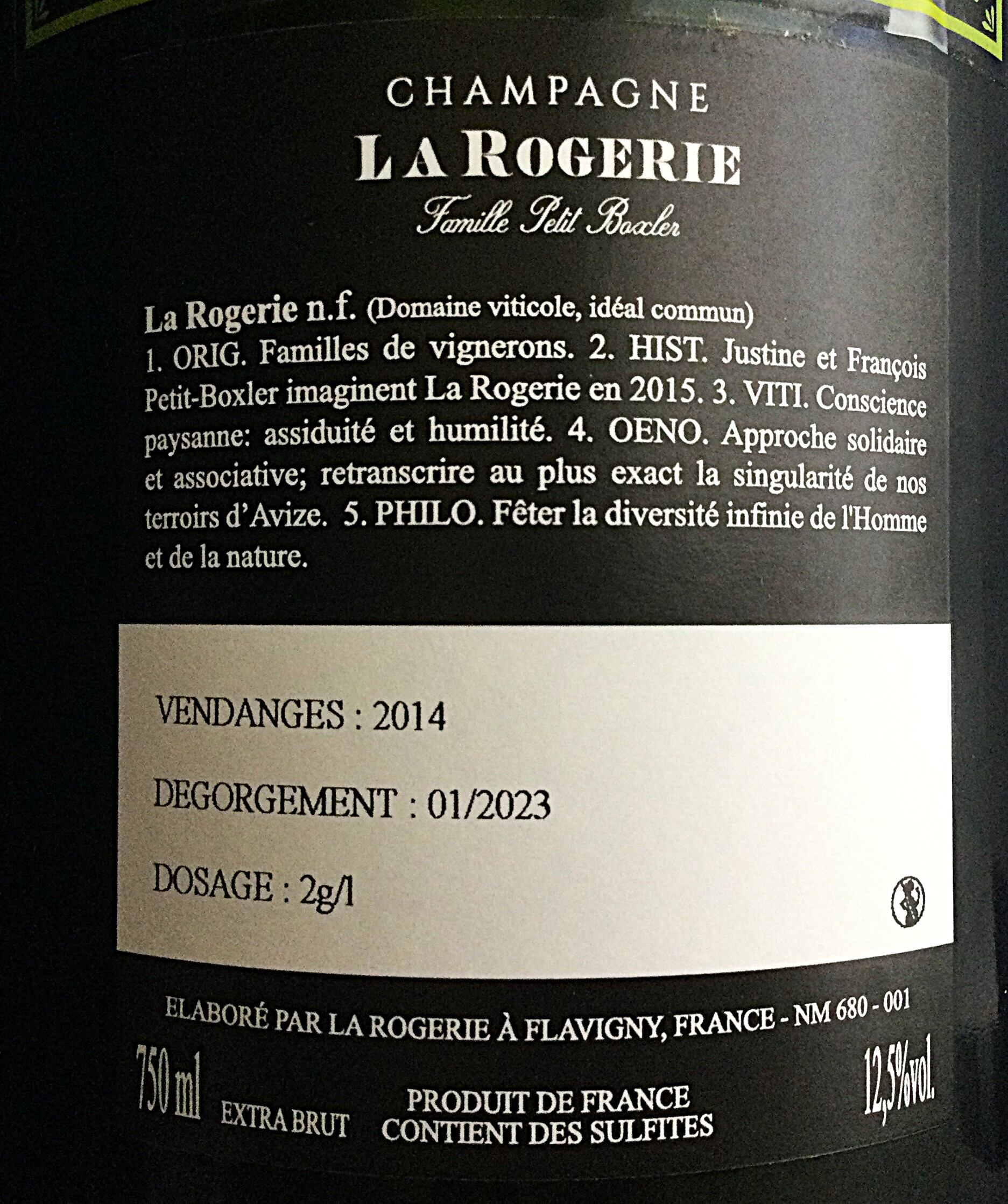 若い夫妻ジュスティーヌとフランソワが始めた、小さな小さなメゾン、ラ・ロジュリー。畑も60aしかありません。(1a=10 m×10m) が、その畑はグラン クリュであり、ジャック・セロスも所有する「シュマン・ド・シャロン」という区画です。(シュマン・ド・シャロンは2つの村をまたがっていて、ロジュリーはアヴィーズ側 セロスはクラマン側を所有)フランソワの祖父母が1940代に畑を購入し、2015年までシャンパーニュを造っていましたが 2人が引き継ぐことになり2016年に地下にセラーを造り、ラ・ロジュリーを設立しました。ラ・ロジュリーは、その祖父の名前Rogerに由来しています。ジュスティーヌはアルザスの名門、ボクスレ一族に育ち、ワインガイドブック「レ・メイユール」 で三ッ星の「アルベール・ボクスレ」の現当主 ジャン・ボクスレとは従兄弟となります 。夫妻とも、ブルゴーニュのワインが好きなので、それを理想としており
