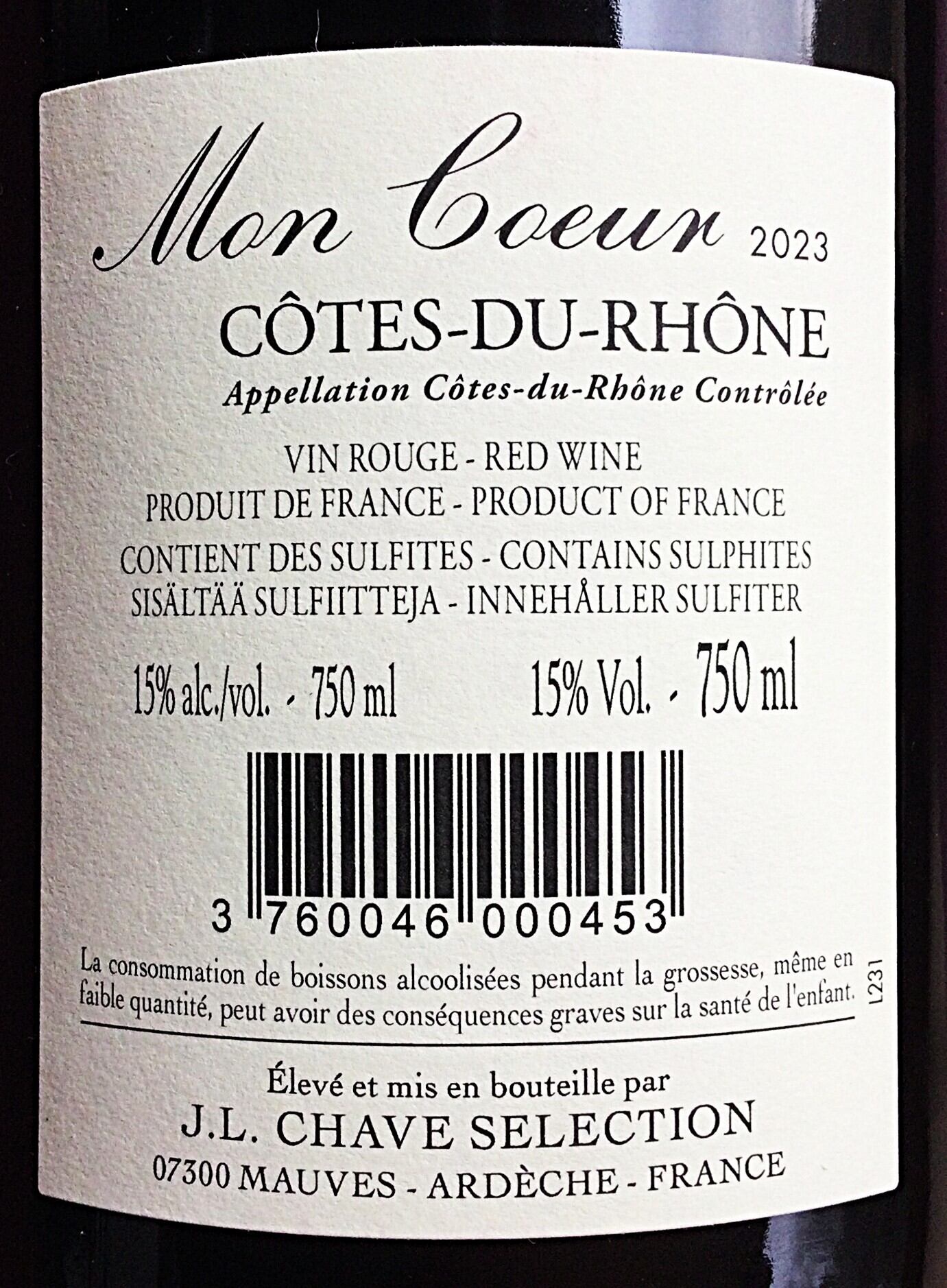 シラー種50%、グルナッシュ種50%。樹齢は20~60年で沖積土壌でパワーとエレガントさを表現する「Visan(ヴィザン)」、深い砂粘土質土壌で果実風味豊かなメリハリを与えるビュイソン「Buisson(ビュイソン)」、石灰質の非常に多い粘土石灰質土壌で冷涼な気候がピュアさと凝縮感を与える「Vinsobres(ヴァンゾブル)」、粘土質土壌に樹齢の古いグルナッシュが植えられており、リッチでグリセリン豊富、ストラクチャー、奥行きを与え、モンクールのハーモニーをまとめる「Estézargues(エステザルグ)」など、数区画の畑をアサンブラージュし造られます。その中には本来ならば格上のコート デュ ローヌ ヴィラージュを名乗れる区画もありますが、敢えて格下げしています。胡椒のようなスパイシーな香り、シラーの力強さとグルッナシュの果実味がバランスよく、柔らかな口当たりで飲みやすく仕上がっており、コート デュ ローヌのレベルをはるかに凌駕するほどの美味しさです。(輸入元情報より)