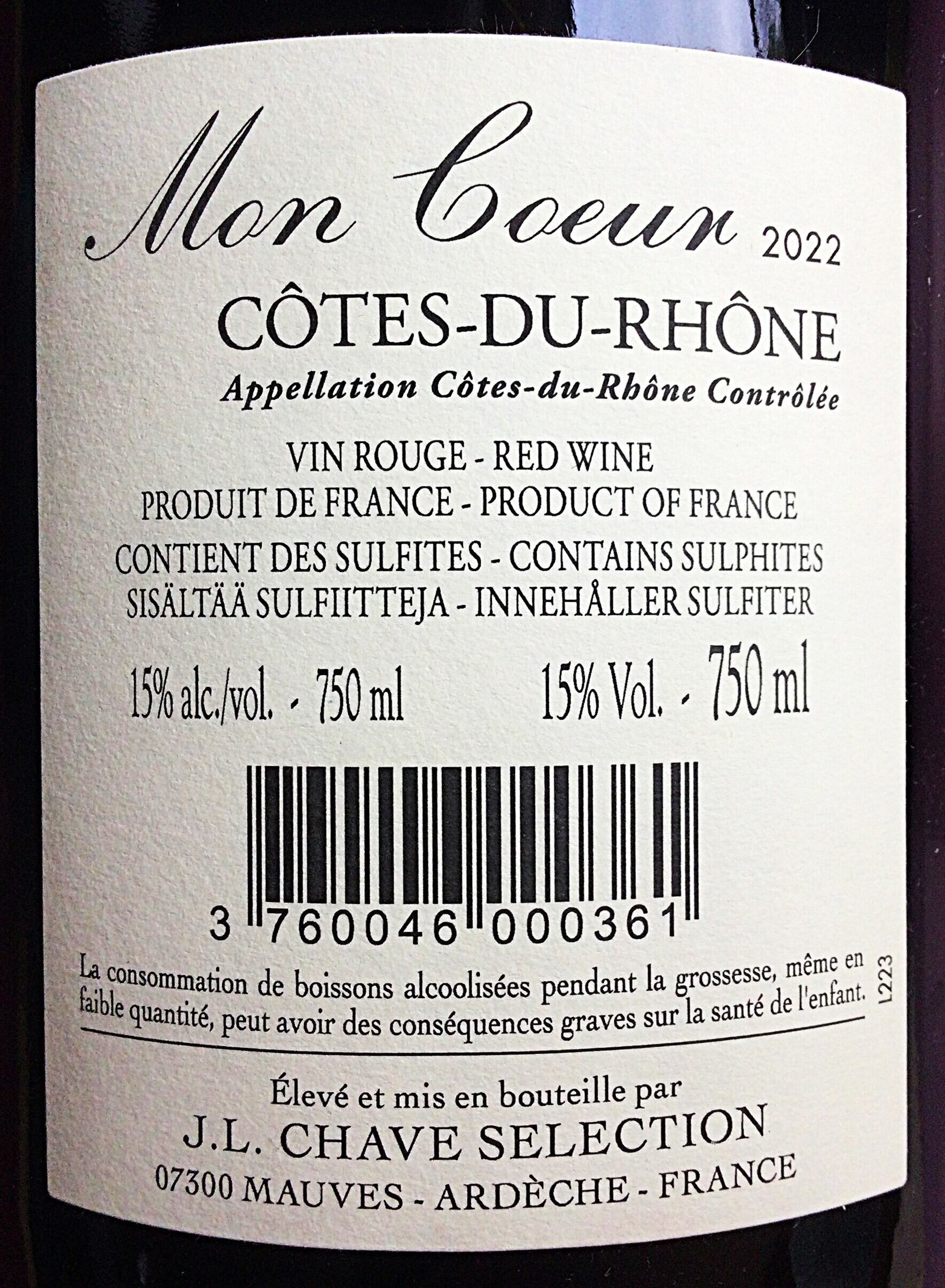 シラー種50%、グルナッシュ種50%。樹齢は20~60年で沖積土壌でパワーとエレガントさを表現する「Visan(ヴィザン)」、深い砂粘土質土壌で果実風味豊かなメリハリを与えるビュイソン「Buisson(ビュイソン)」、石灰質の非常に多い粘土石灰質土壌で冷涼な気候がピュアさと凝縮感を与える「Vinsobres(ヴァンゾブル)」、粘土質土壌に樹齢の古いグルナッシュが植えられており、リッチでグリセリン豊富、ストラクチャー、奥行きを与え、モンクールのハーモニーをまとめる「Estézargues(エステザルグ)」など、数区画の畑をアサンブラージュし造られます。その中には本来ならば格上のコート デュ ローヌ ヴィラージュを名乗れる区画もありますが、敢えて格下げしています。胡椒のようなスパイシーな香り、シラーの力強さとグルッナシュの果実味がバランスよく、柔らかな口当たりで飲みやすく仕上がっており、コート デュ ローヌのレベルをはるかに凌駕するほどの美味しさです。(輸入元情報より)