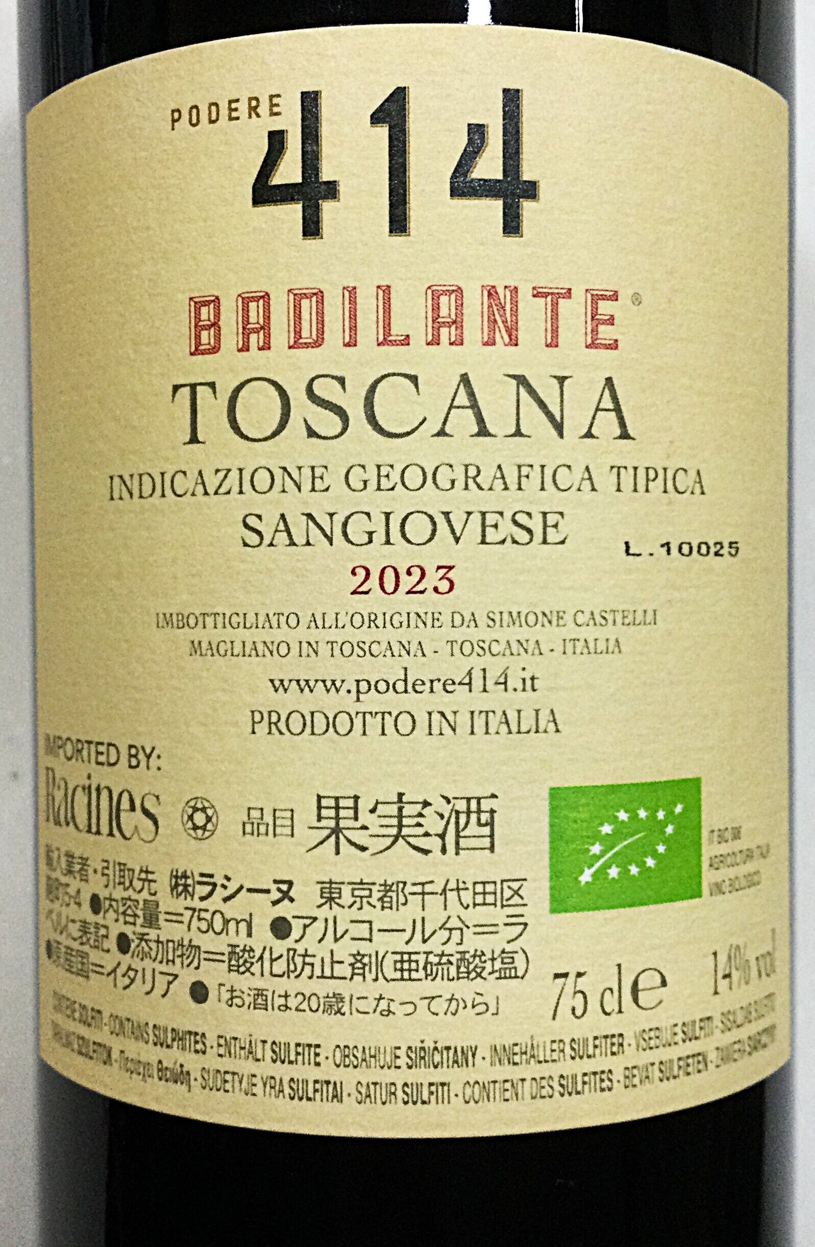 トスカーナ屈指の有名エノロゴ、マウリッツィオ・カステッリ(マストロヤンニやグラッタマッコをコンサルタント)の子息、シモーネ・カステッリが、モレッリーノ・ディ・スカンサーノに1998年に創業したワイナリー。当初から “ナチュラル” 、および “サンジョヴェーゼの個性、すなわちピノ・ノワールやネッビオーロと同様に、地域の特徴を鋭敏に反映させるワイン造り” をモットーに掲げていた。畑の標高は250m前後。2014年まではセメントタンク発酵、木樽で3週間前後マセレーションしたモレッリーノ・ディ・スカンサーノ1種類のみを生産していたが、この年からより選果を厳しくし、セカンドラインとしてトスカーナ・ロッソ “バディランテ” も生産。2010年代以降の気候変動へと対応し、フラッグシップのモレッリーノ・ディ・スカンサーノの品質を維持するための判断だった。また、1960年代のヒッピー・カルチャーを象徴する詩人アレン・ギンスバーグの言葉である「フラワー・パワー」と名付けたロゼも、話題。いずれのワインも温容とおおらかさをたたえ、優美さとバランスを保ち、飲み手を優しく受入れてくれる。414という数字は1960年代にマレンマ地方で行われた、農区画整理の時につけられた番号。(輸入元情報より)