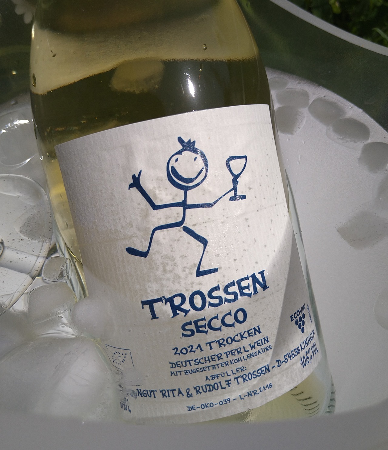 手作業で収穫。全房圧搾。容量2000ℓのステンレスタンクで醗酵。ステンレスタンクで6ヶ月間熟成。ゼクト業者に依頼して炭酸を吹き込んで仕上げたペールヴァイン(炭酸2.5気圧)。オーナー夫妻の名字である“Trossen”(トロッセン)と、ドイツで人気の微発泡ワイン・プロセッコ”Prossecco”を繋げたネーミング。軽く繊細で澄んだ果実味と微炭酸が生き生きとして優しく、飲んでいて楽しくなるワイン。(輸入元情報より)
