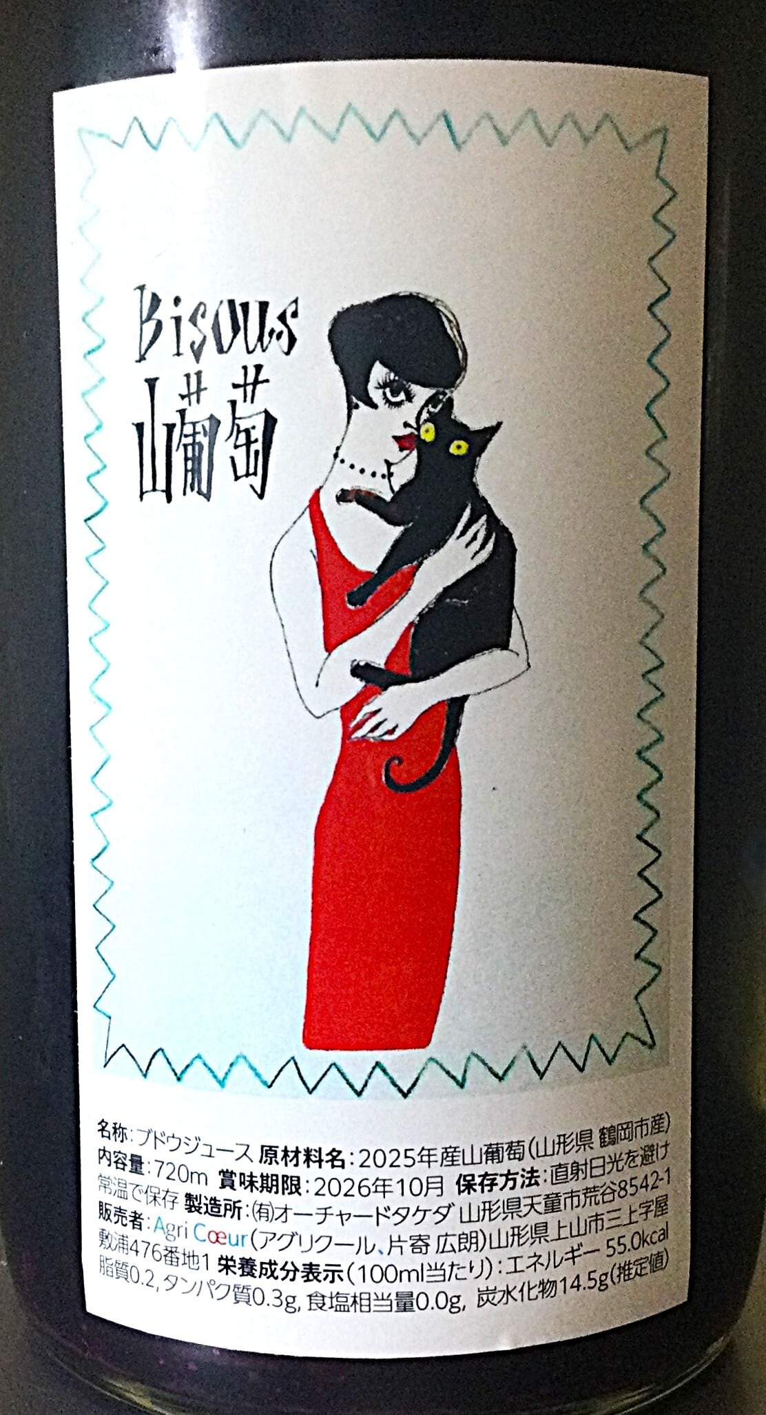 果汁の甘さ、酸味、皮や色素を感じる渋味(まぁまぁあります)がギュッと詰まった大人のブドウジュースです!ラベルのような貴婦人にふさわしい。めちゃ美味しい!!